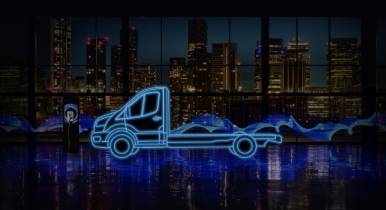 SYNC 4** on pilvepõhine info- ja meelelahutussüsteem, millel on täiustatud marsruudiplaneerimine ja vestlusfunktsiooniga häältuvastus. Pilvühenduvus võimaldab Ford Power-Upi tarkvarauuendusi, et hoida elektrikaubik pidevalt ajakohasena. Varustusse kuulub ka nutitelefoni juhtmeta integreerimine, uus 12-tolline puuteekraan ja palju muud.